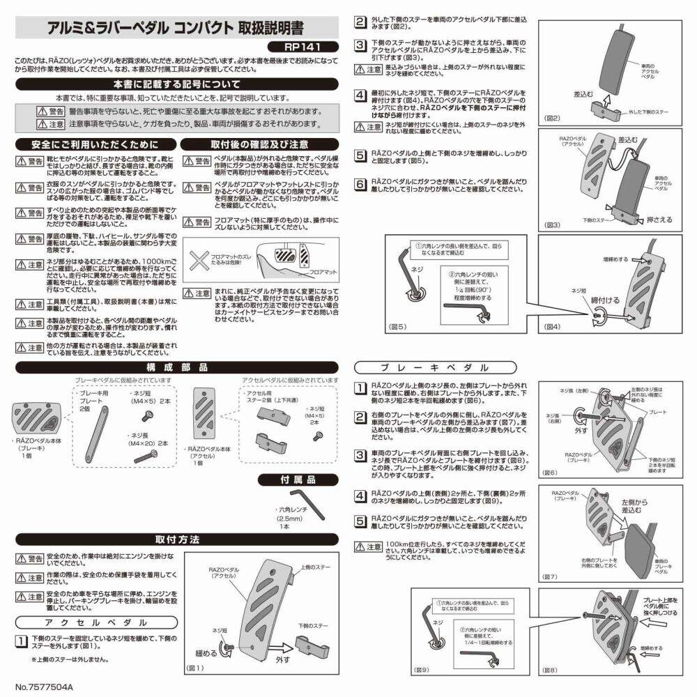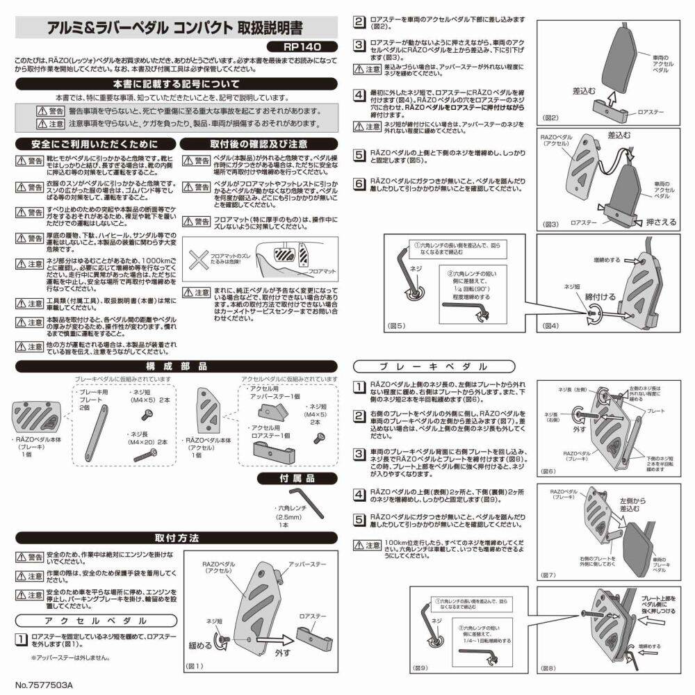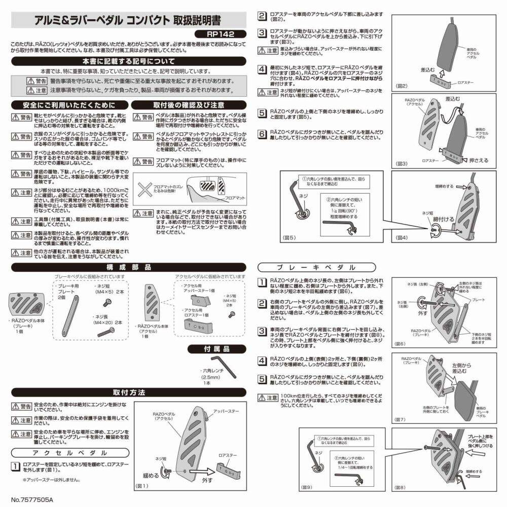 - The pedals are part of the important functional parts. Be sure to read the instruction manual inside the package when installing the pedals to prevent accidents.