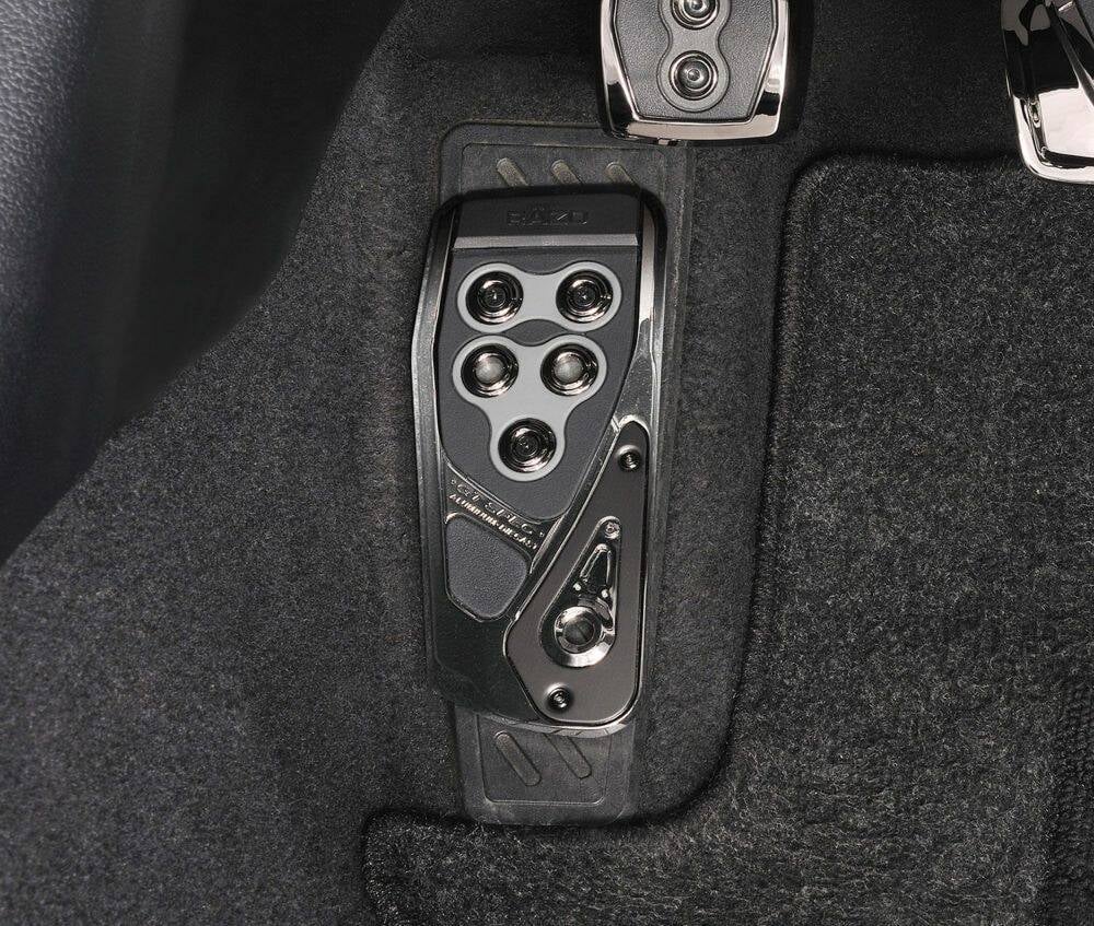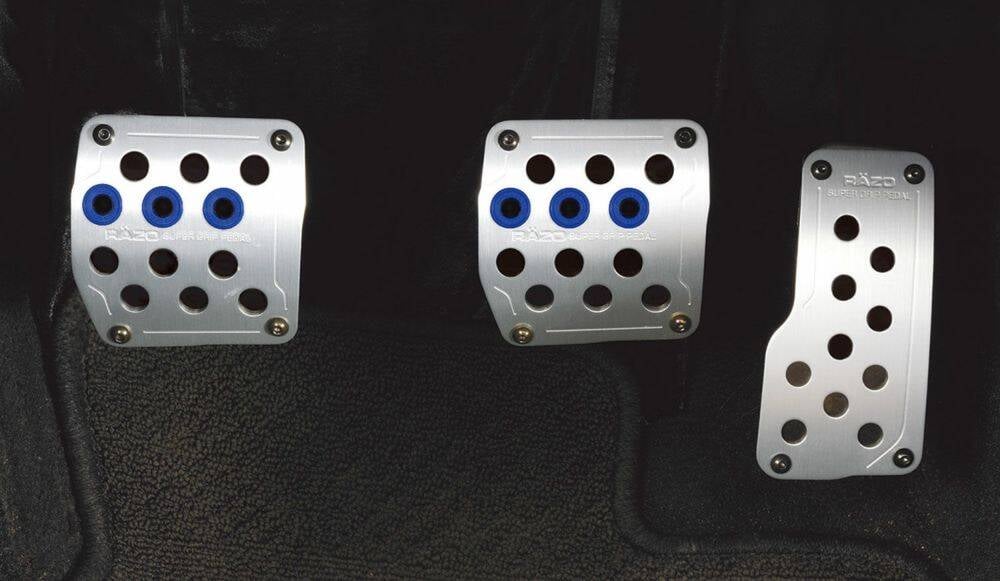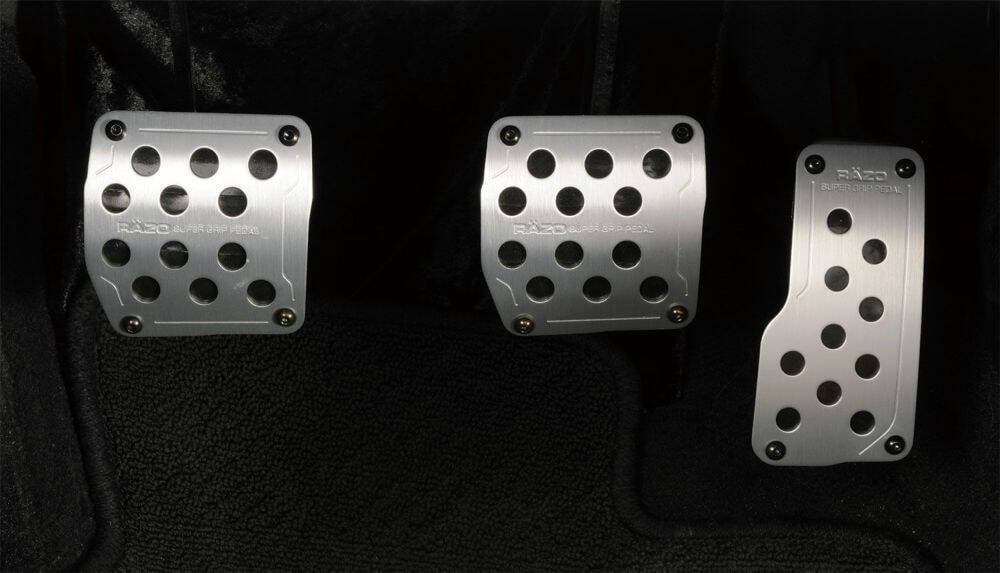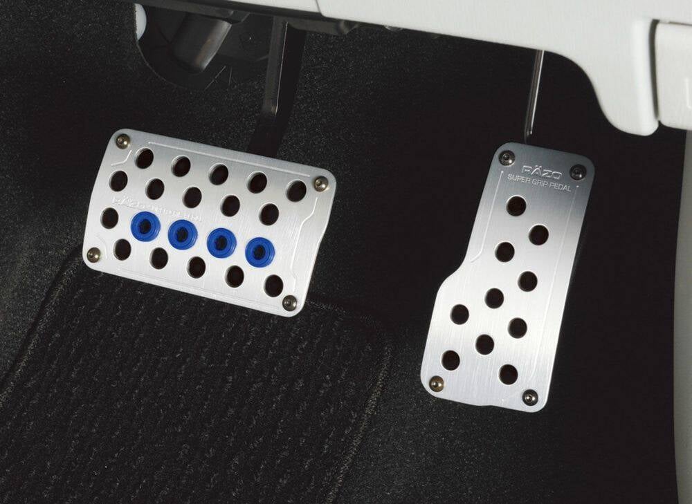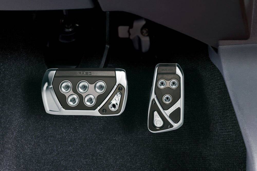 Increasing the grip isn't necessarily the concept behind the RAZO pedal. It's the ease of changeover and some racing drivers say that the accelerator can be more subtle if it slides vertically. That's why there is a difference in the grip pattern between the accelerator and brake and the heel and toe pattern.