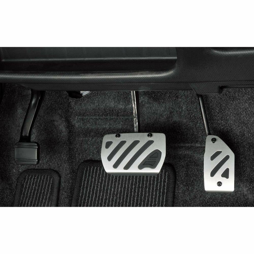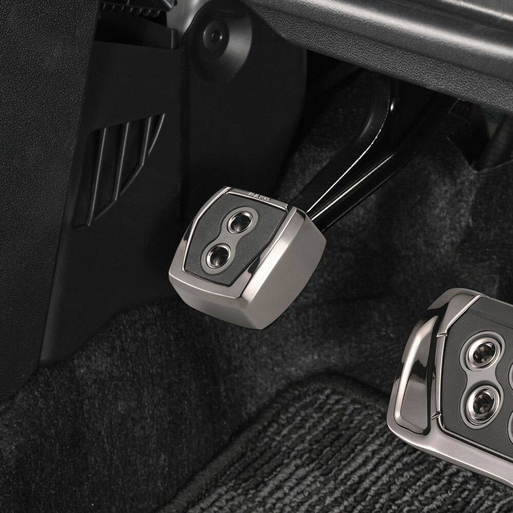 Specially designed to match the factory pedals, the mounting hardware has been greatly reduced for easy and snug fitted installation. Highly rigid aluminum alloy pedals with hairline and anodized finish. The brake pedal is made of convex rubber for a high anti-slip effect. Since the accelerator pedal is a suspended type, it requires a certain amount of slippage on the back side of the shoe and the surface of the pedal, the rubber and aluminum have been designed to be uneven so that there is no snagging when you step on the accelerator.